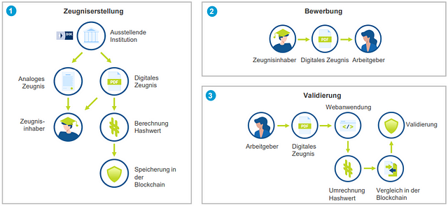 - Im Rahmen einer Bewerbung übermittelt der Zeugnisinhaber dem potenziellen Arbeitgeber sein digitales Zertifikat.